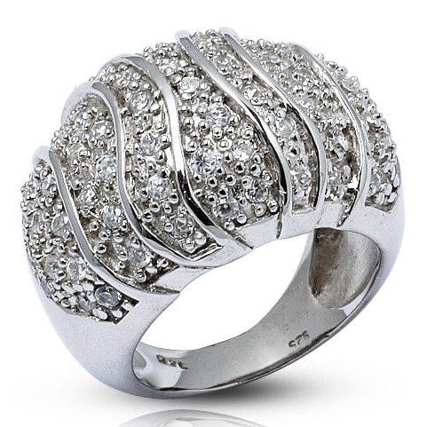 Szeroki Srebrny Pierścionek z Białymi Cyrkoniami