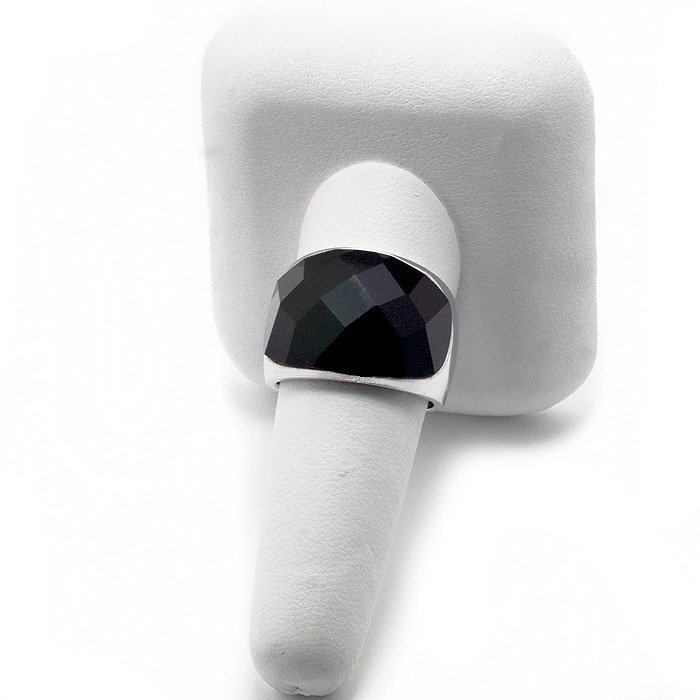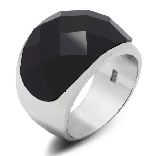 Szeroka Obrączka Srebrna z Czarnym Onyksem