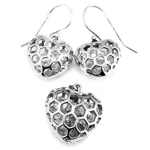 Srebrny Komplet Biżuterii w Serce Rodowany