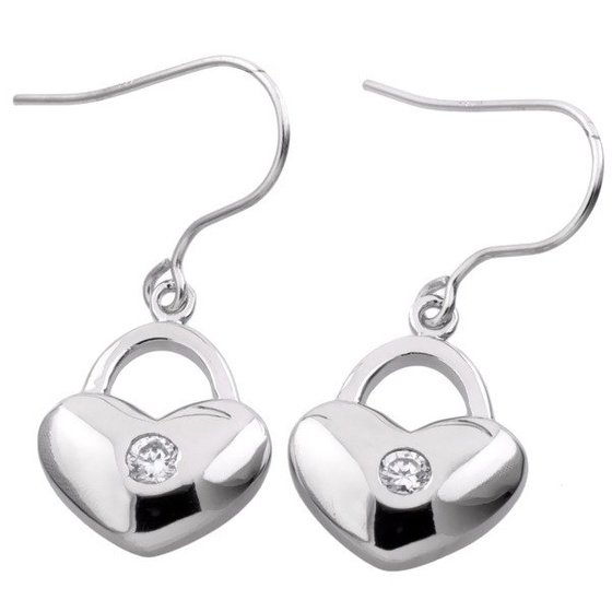 Kolczyki Srebrne Serca z Cyrkonią Rodowane