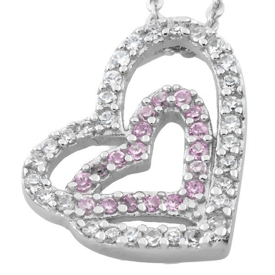 Srebrna Zawieszka Dwa Serca Białe i Różowe