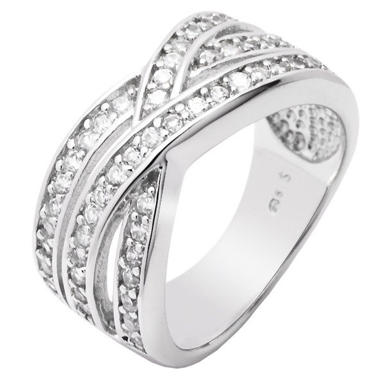 Srebrna Obrączka Przeplatana Białymi Cyrkoniami
