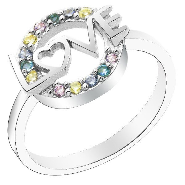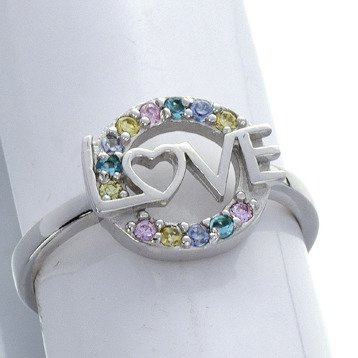 Pierścionek Srebrny z Kolorowymi Cyrkoniami LOVE