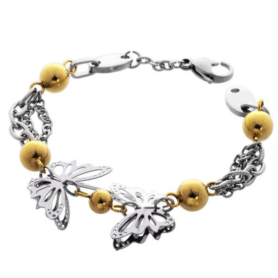 Bransoletka ze Złotymi Motylami Stal Szlachetna