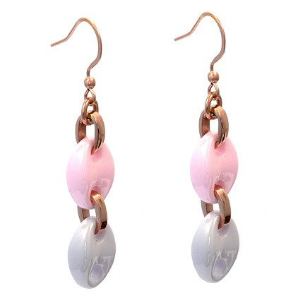 Kolczyki z Różową Ceramiką i Złota Stal Szlachetna