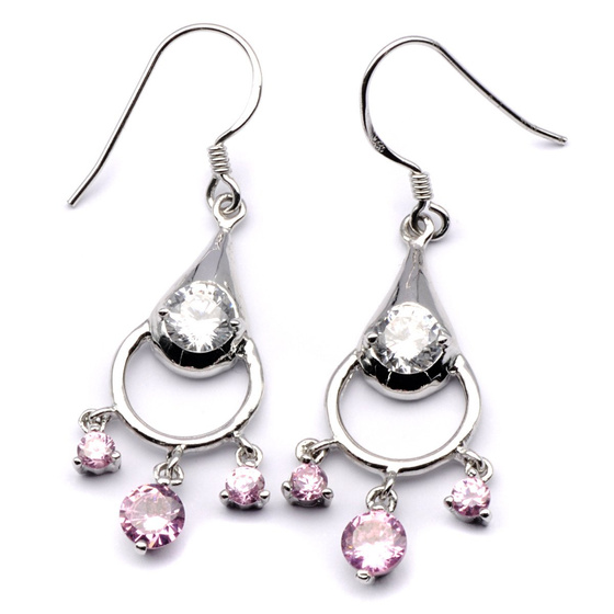 Kolczyki Srebrne z Białymi i Różowymi Cyrkoniami