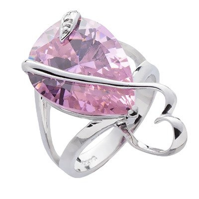 Pierścionek Srebrny Duża Różowa Cyrkonia