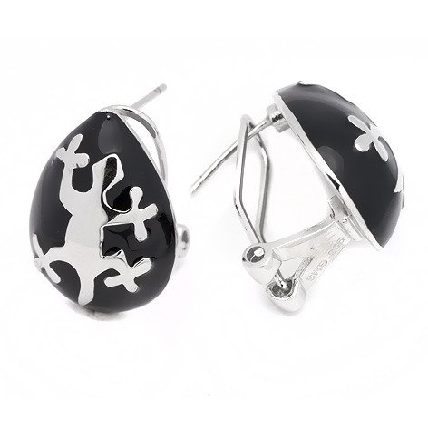 Kolczyki Srebrne Czarne z Motywem Jaszczurki