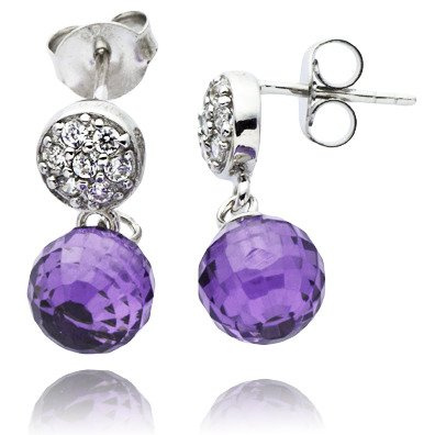Srebrne Kolczyki Ametystowe Kamienie Kulki