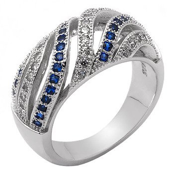 Pierścionek Srebrny Szafirowe i Białe Cyrkonie