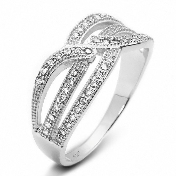 Pierścionek Srebrny Przeplataniec z Cyrkoniami