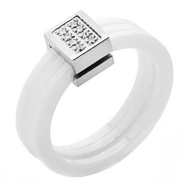 Pierścionek z Białą Ceramiką i Cyrkoniami