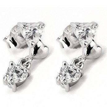Srebrne Kolczyki Serduszko Białe Cyrkonie