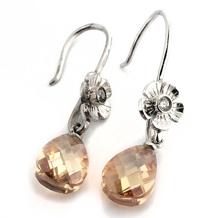 Srebrne Kolczyki z Dużą Pomarańczowa Cyrkonią