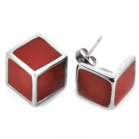 Czerwone Kostki Kolczyki ze Stali Chirurgicznej