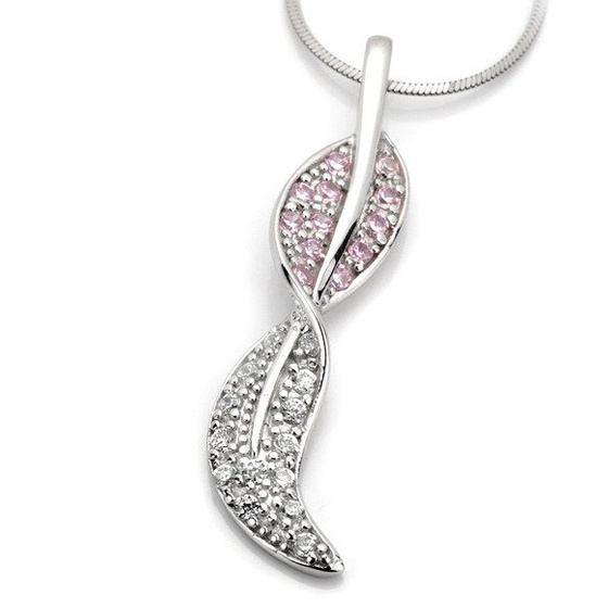 Srebrny Wisiorek Liść z Różowymi Cyrkoniami