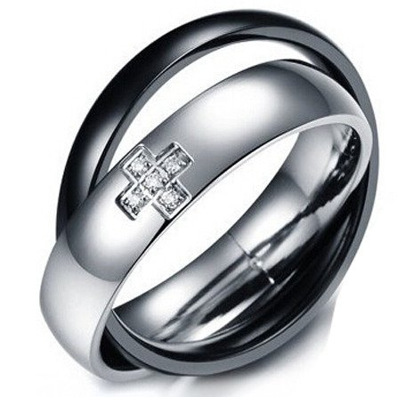 Obrączka Dwu Kolorowa z Cyrkoniami Stal Szlachetna