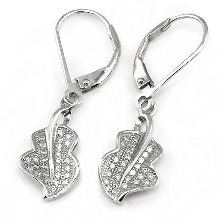 Srebrne Kolczyki Liście z Białymi Mikro Cyrkoniami