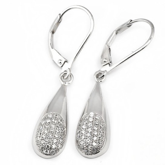 Podłużen Kolczyki ze Srebra z Mikro Cyrkoniami
