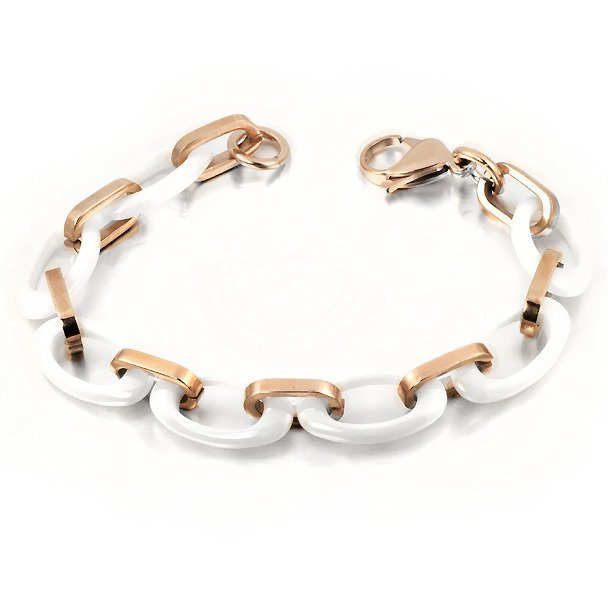 Różowo Złota Bransoletka ze Stali i Ceramiki