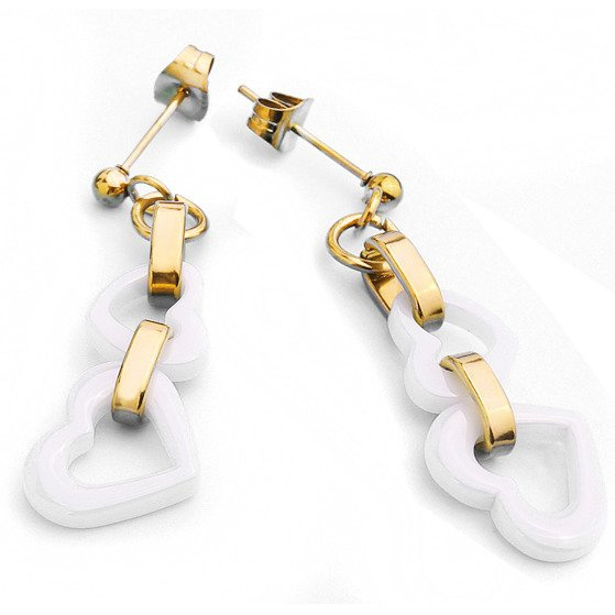 Kolczyki Serca Biała Ceramika i Stal Szlachetna
