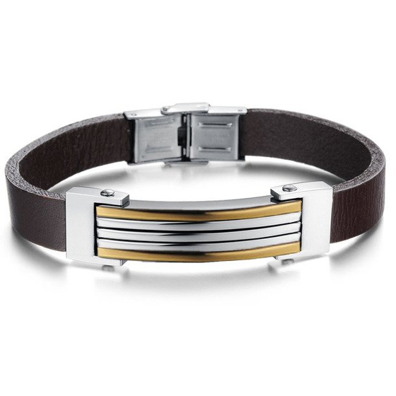 Stalowa Bransoletka z Czarną Skórą Naturalną