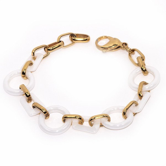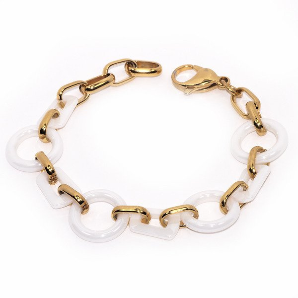 Bransoletka Biała Ceramika i Złota Stal Szlachetna