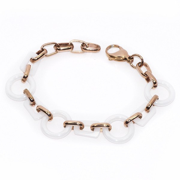 Bransoletka Biała Ceramika i Złota Stal Szlachetna