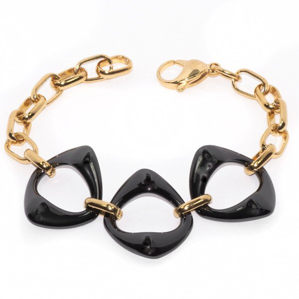 Bransoletka Czarna Ceramika Złota Stal Szlachetna
