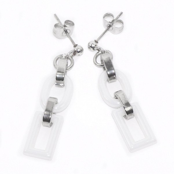 Kolczyki z Białą Ceramiką i Stal Szlachetna