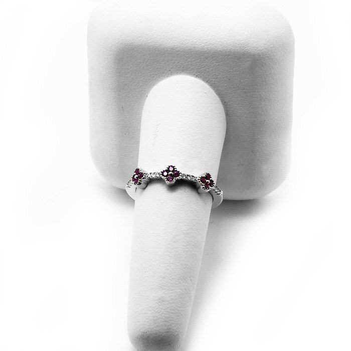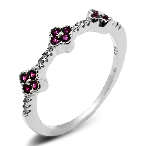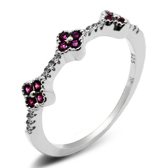 Pierścionek Srebrny z Rubinowymi Cyrkoniami