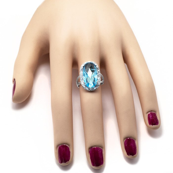 Srebrny Pierścionek z Dużym Błękitnym Kamieniem