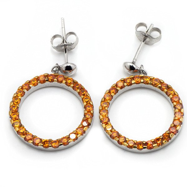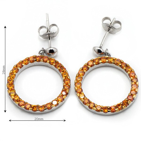 Kolczyki Srebrne Koła z Pomarańczowymi Cyrkoniami