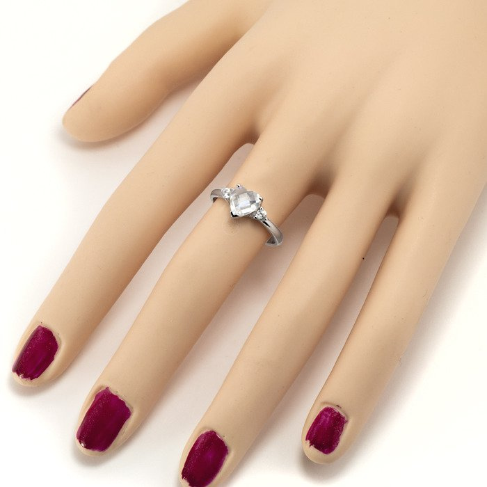 Srebrny Pierścionek Białe Diamentowe Serduszko