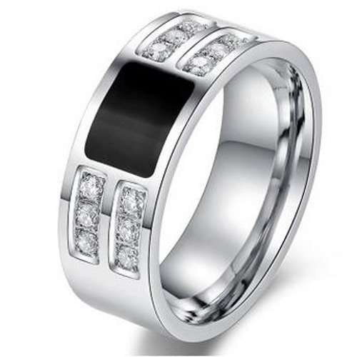 Pierścionek ze Stali z Czarnym Kamieniem