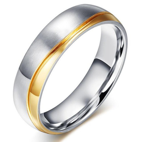 Obrączka ze Stali Szlachetnej z Złotymi Wstawkami
