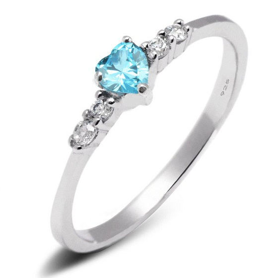 Srebrny Pierścionek Serce z Błękitną Cyrkonią