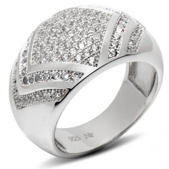 Obrączka Srebrna Wysadzana Białymi Cyrkoniami