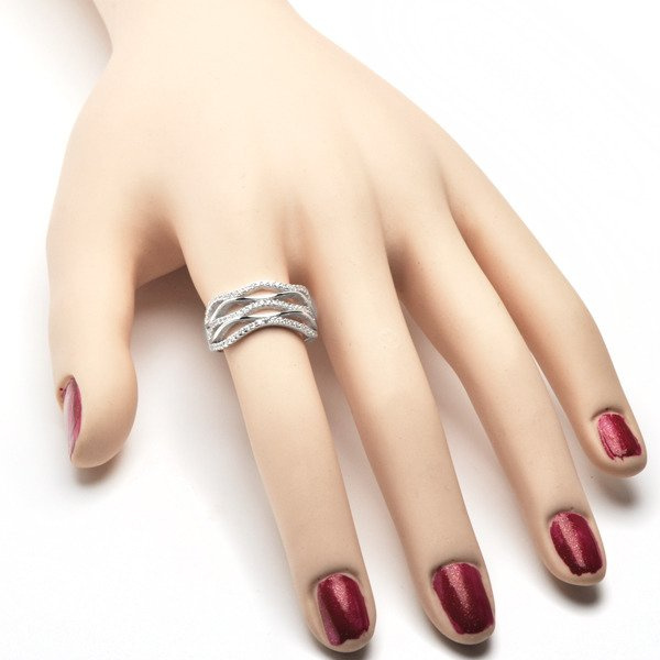 Szeroka Obrączka Srebrna z Trzema Rzędami Kamieni