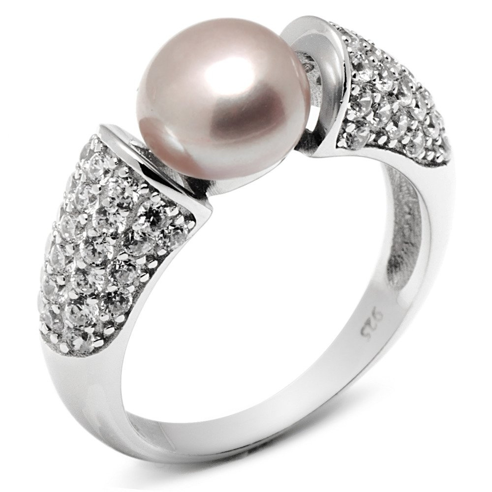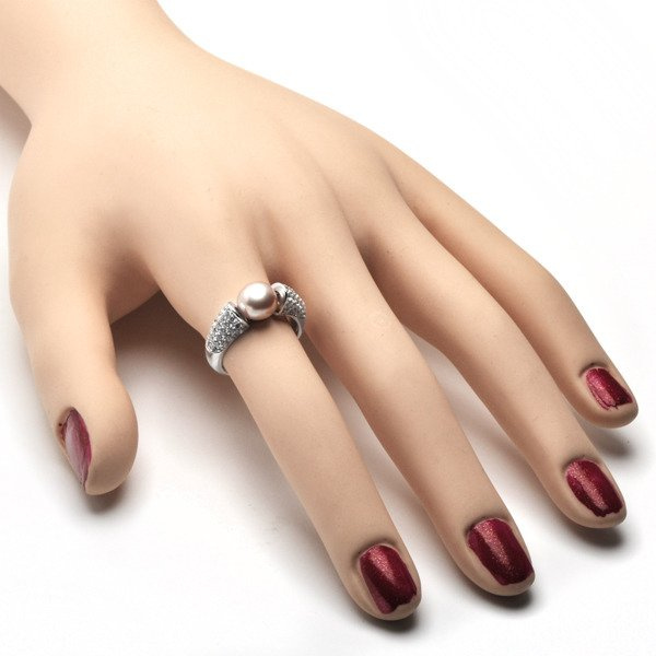 Pierścionek Srebrny z Fioletową Perłą i Cyrkoniami