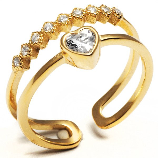 Pierścionek Srebrny Pozłacany Serce z Cyrkoniami