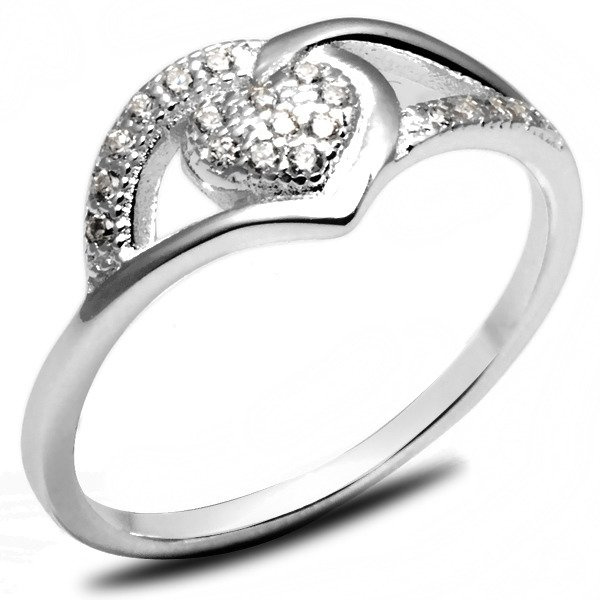 Pierścionek Srebrny Serce Mikro Cyrkoniami