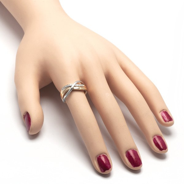 Złota Obrączka Pierścionek Przeplatany Brylanty
