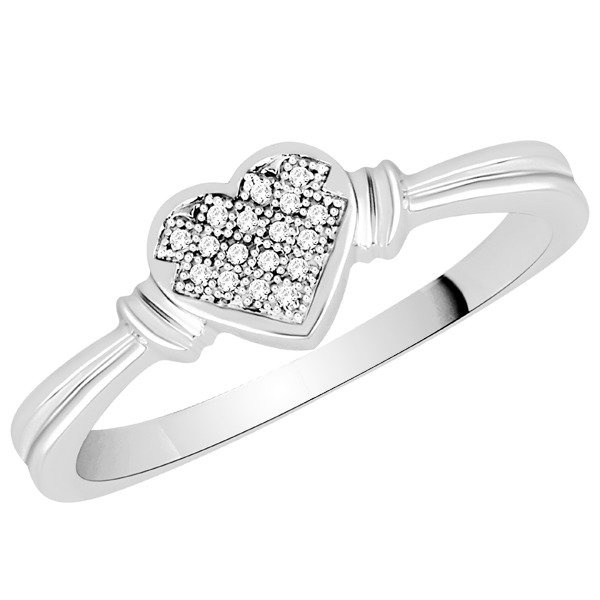 Pierścionek z Białego Złota z Brylantami Serduszko