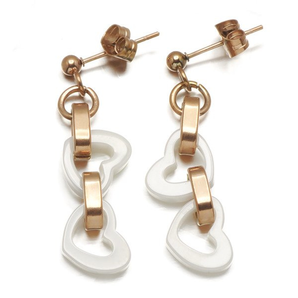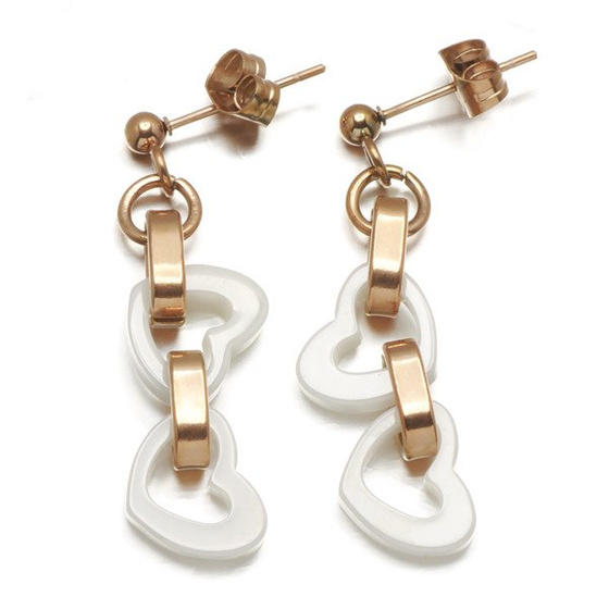 Kolczyki Serca z Białą Ceramiką i Stal Szlachetna