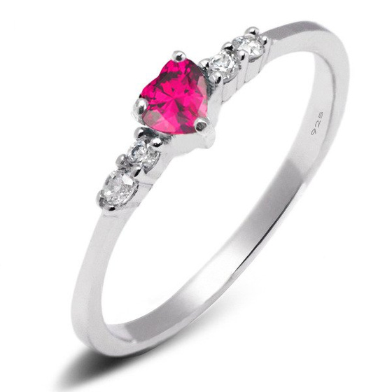 Srebrny Pierścionek Serce z Rubinową Cyrkonią