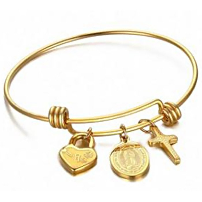 Bransoletka z Bozią Krzyżyk Kłódka z Serduszkiem