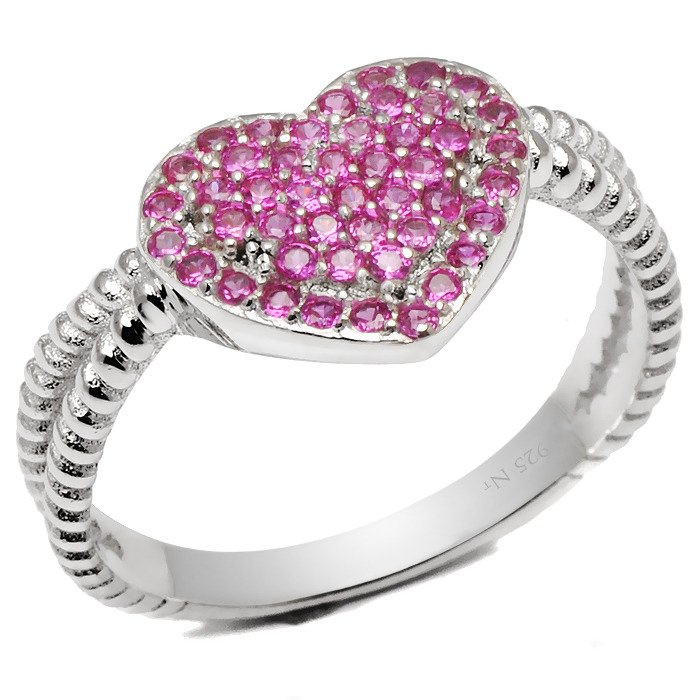 Srebrny Pierścionek Serce Rubinowe Kamienie