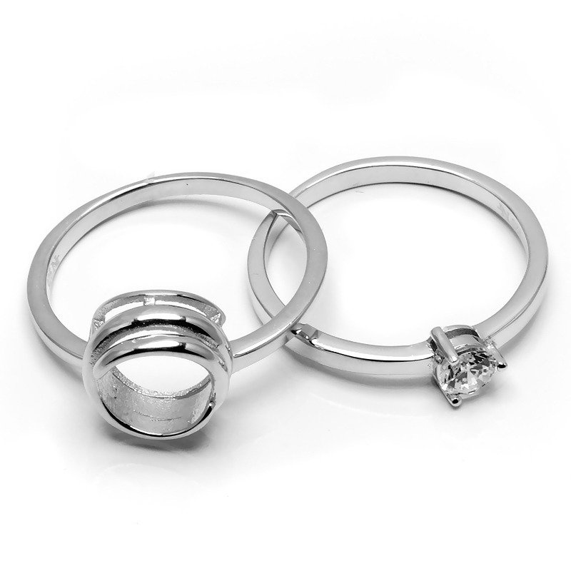 Podwójny Pierścionek Srebrny Brylantowa Cyrkonia