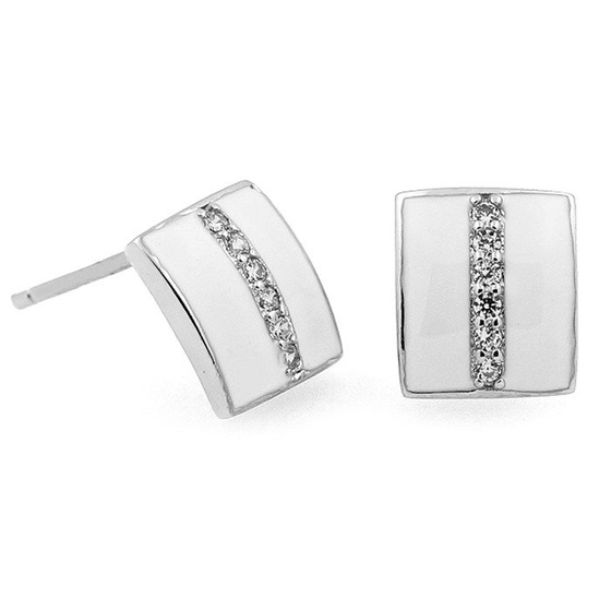 Srebrne Kolczyki Biale Wysadzane Cyrkonianmi